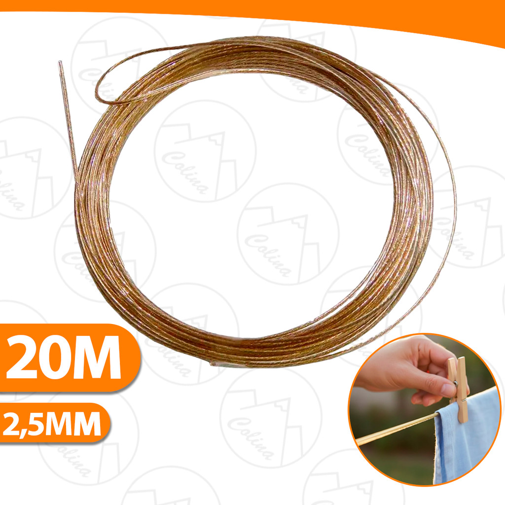 Corda Para Varal De Roupas 20 Metros Fio de Aço Revestido em PVC 2,5mm Super Resistente