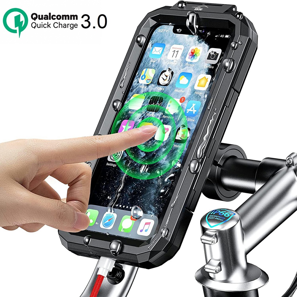 Suporte de Celular a Prova d'água Para Moto com Carregador Indução/ Wireless + USB Tipo-C
