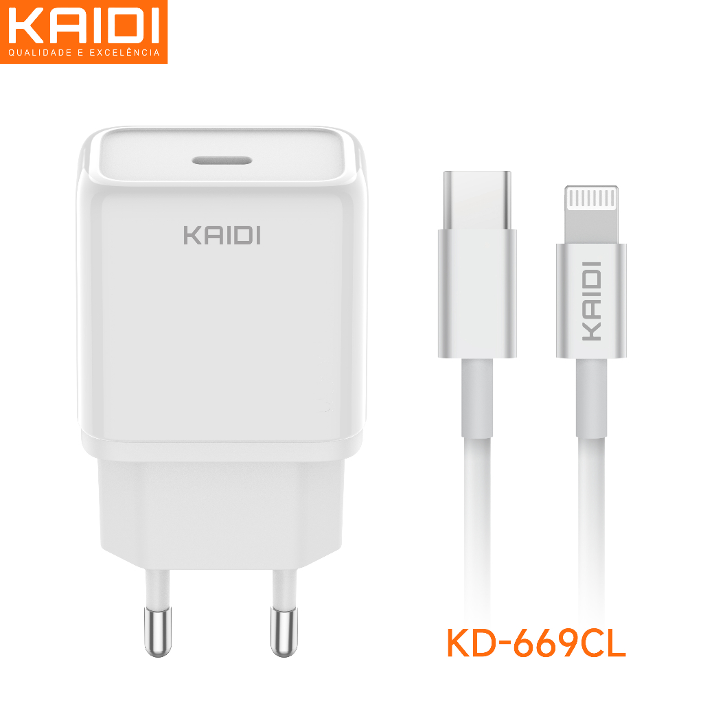 Carregador de Tomada Turbo com cabo Tipo-C para Lightning KAIDI KD-669CL