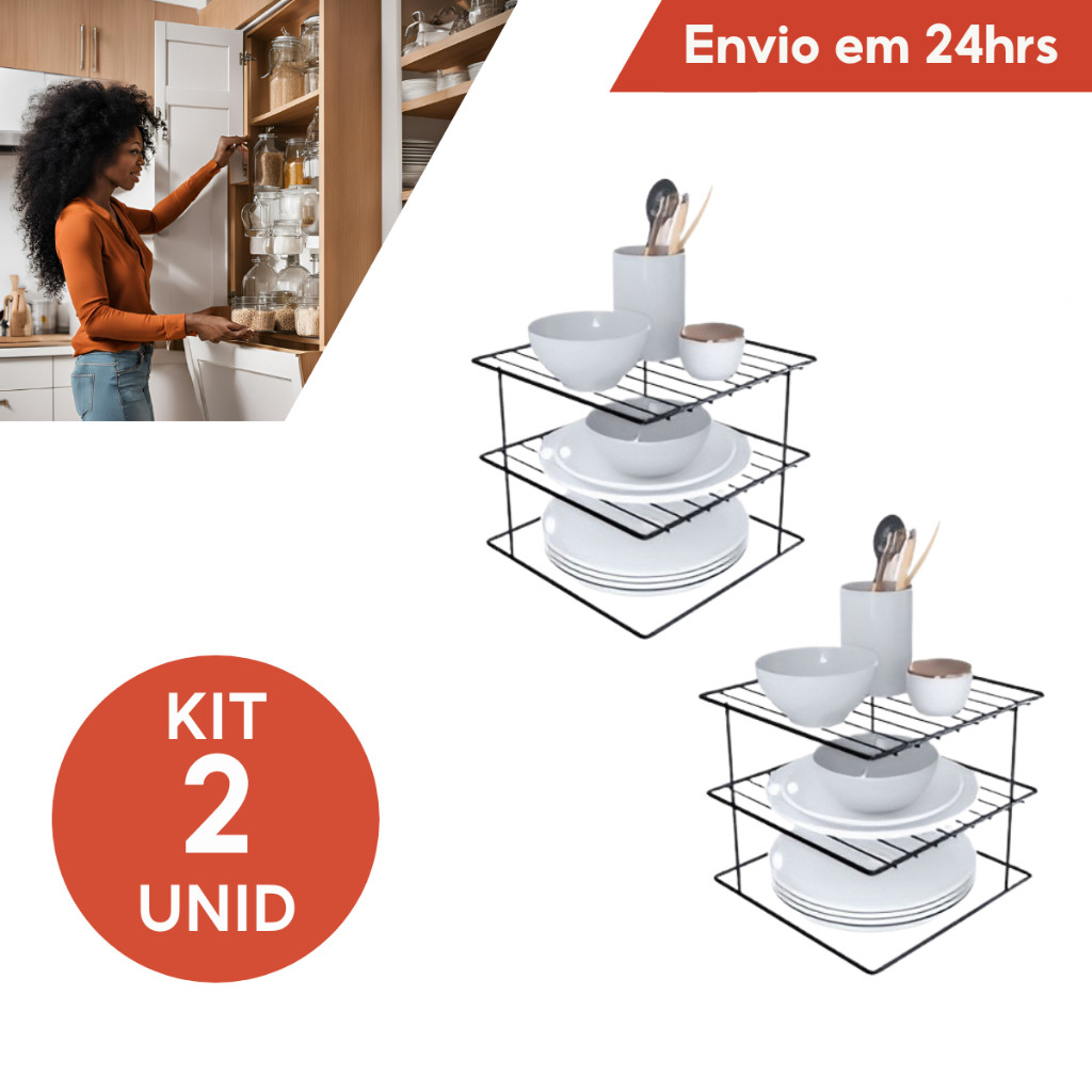 Kit 2 Organizadores de Pratos Quadrado para Armário Cozinha Aramado Prateleira Porta Louças