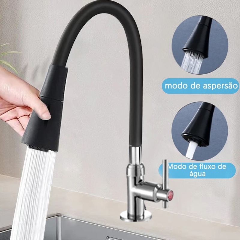 Torneira Gourmet Parede para pia de cozinha Deluxe com chuveiro flexível de Rotação 360°