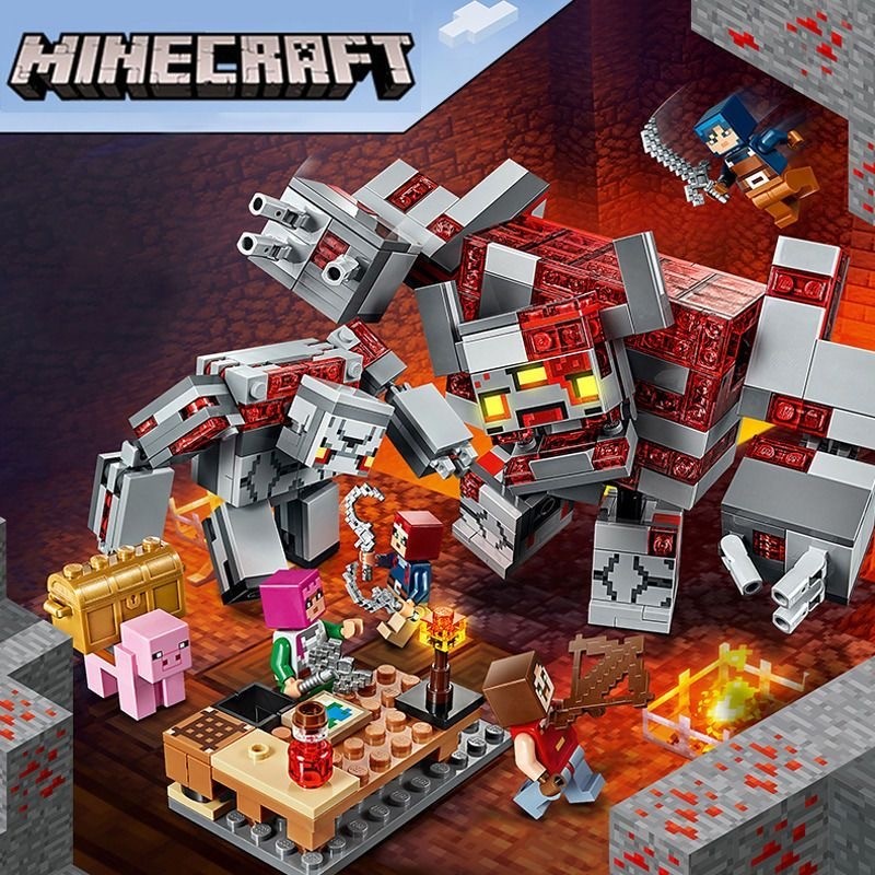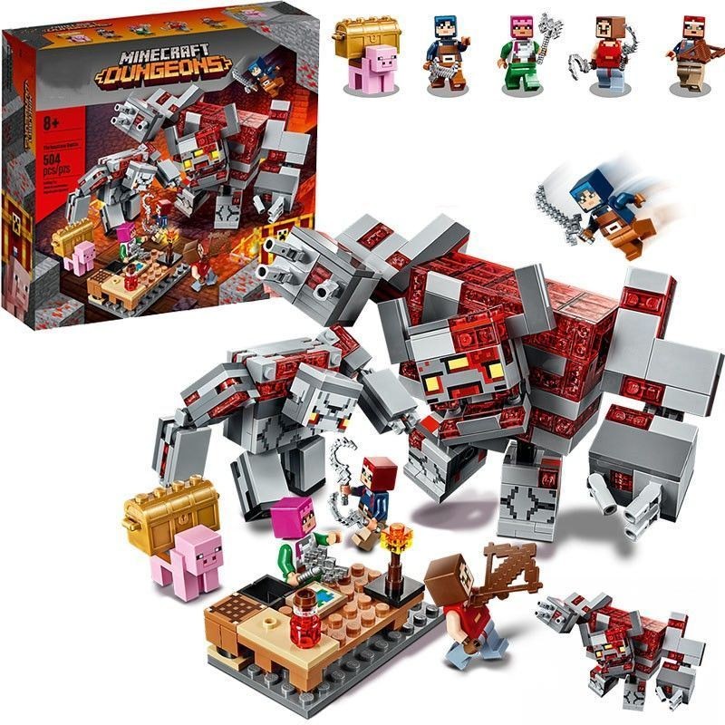 【4】Compatível com Lego Minecraft Dungeon Building Blocks Battle of Redstone Boys Brinquedos montados de 8 a 12 anos