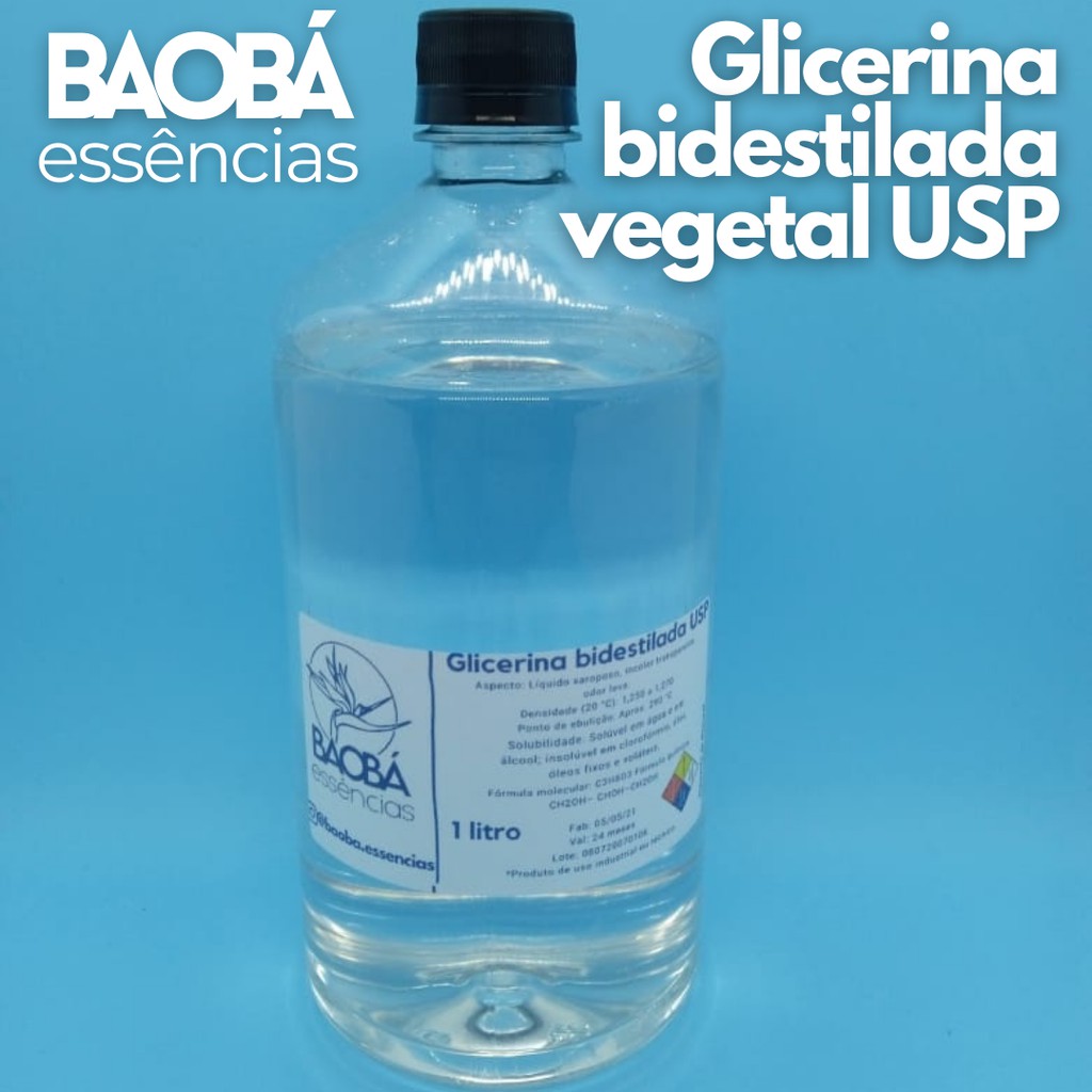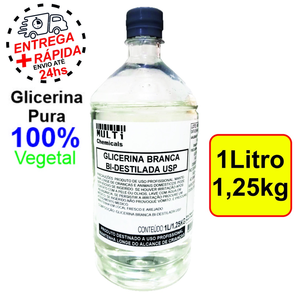 Glicerina Bi-destilada Vegetal - 1 Litro 100% Pura